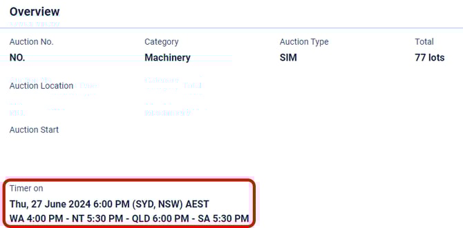 Simultaneous (SIM) auctions conclude using a timer system that becomes visible at the top of the auction at the time set by the selling agent or as otherwise determined by AuctionsPlus.
