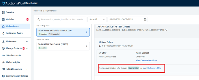 Step 3 - Edit the offer via the AuctionsPlus Dashboard