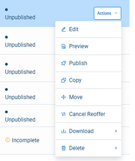To publish lots individually, press ‘Actions’, the below will appear where you press ‘Publish’:
