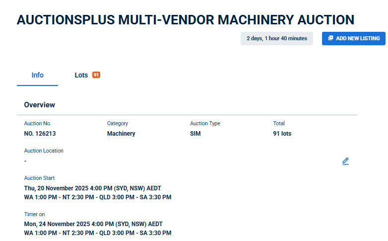 Head to the AuctionsPlus Multi-Vendor Machinery Auction that you want to list an Item in.